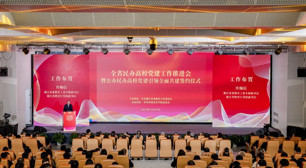 为贯彻落实中共中央关于加强民办学校党的建设工作的意见和全国全省高校党的建设工作会议精神,提升高校党建工作质效,推动党建与事业发展深度融合,以高质量党建引领高等教育事业高质量发展,11月19日,全省民办高校党建工作推进会暨公办民办高校党建引领全面共建签约仪式在中国美术学院南山校区举行。省委教育工委专职副书记、省教育厅党组副书记许翰信,省教育厅(省委教育工委)组织处处长陈钦林、设区市党委教育工委分管领导、公民办结对共建高校党委负责人出席活动。