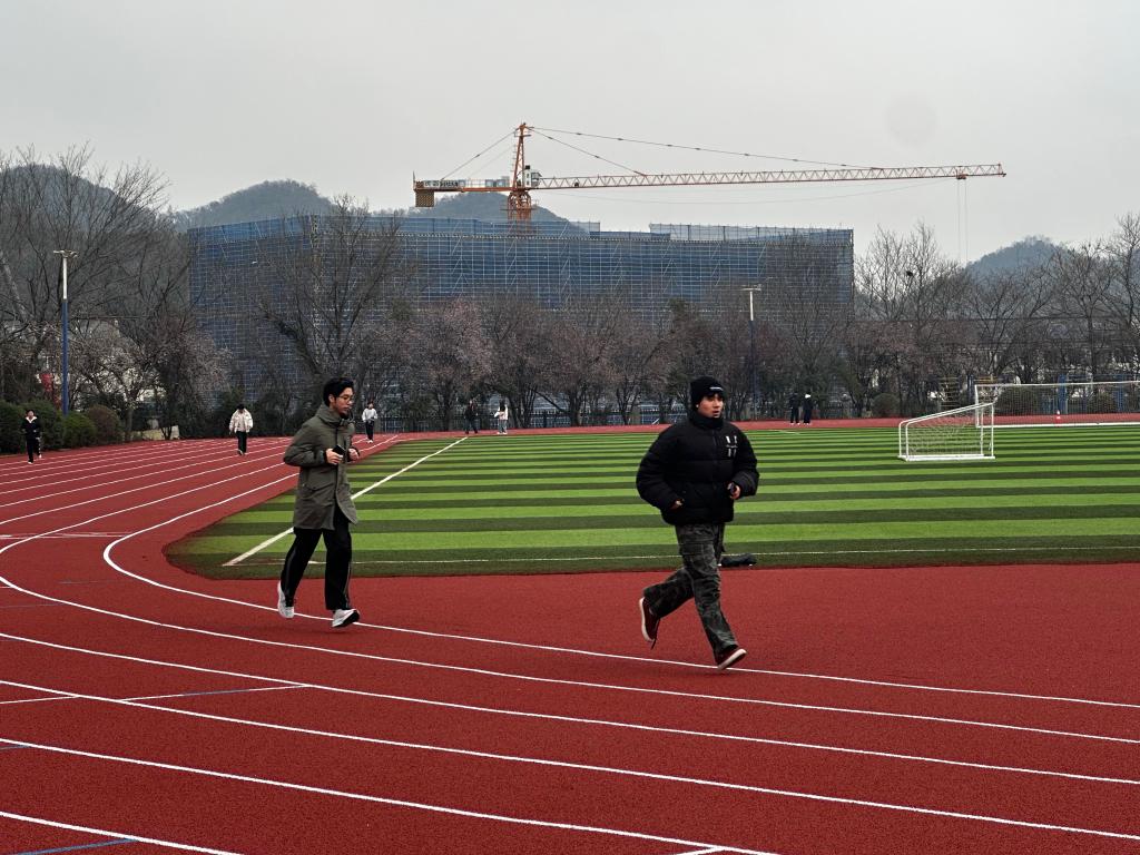 活动开始前,学生在体育老师的指导下规范完成热身训练,依次进行关节活动、腿部及肩部拉伸等动作,为运动安全筑牢基础。活动期间,全体学生精神饱满、步履铿锵,沿指定打卡点有序行进,同窗之间相互鼓励、结伴前行,春日校园里,青春的身影勾勒出活力满满的风景线,尽显青年学子的蓬勃朝气。